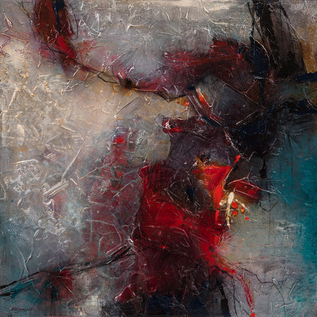 The Cardinal Day Lilly mixed media, 30" x 30"